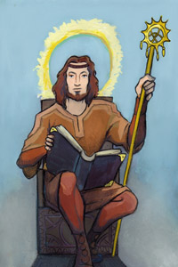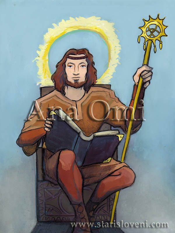 Koledo is Ovsenj’s twin brother. Their mother is Zlatogorka Maja and their father is Dazbog. Ovsenj was born before Koledo and harnessed the horses to the heavenly chariot to make way for his brother. Koledo symbolizes the descent of god Krishna or Krisnji to earth. Ovsenj appears in the summer and Koledo in the winter. On the day of the winter solstice Ovsenj says farewell to the old year and Koledo welcomes the new year, or the new Sun.